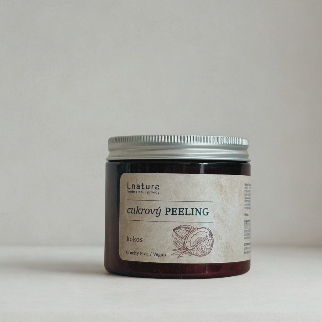 Cukrový peeling KOKOS s dielne Lnatura je ľahký a jednoduchý prírodný rituál starostlivosti o pokožku – spája jemnú exfoliáciu cukrom, výživu masiel a omamnú vôňu kokosu. Je určený pre tých, ktorí milujú vôňu exotiky, jednoduchosť a hrejivý dotyk čistej prírody. Jemný prírodný peeling – cukor šetrne odstraňuje odumreté bunky a podporuje obnovu pokožky.